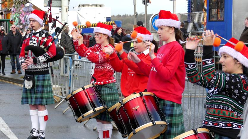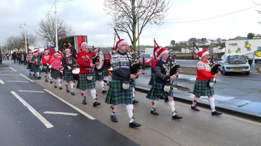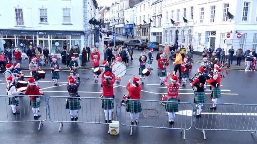 Above: Bideford Youth Pipe Band play as the town gears up for its Christmas lights switch on. Credit: Graham Hobbs