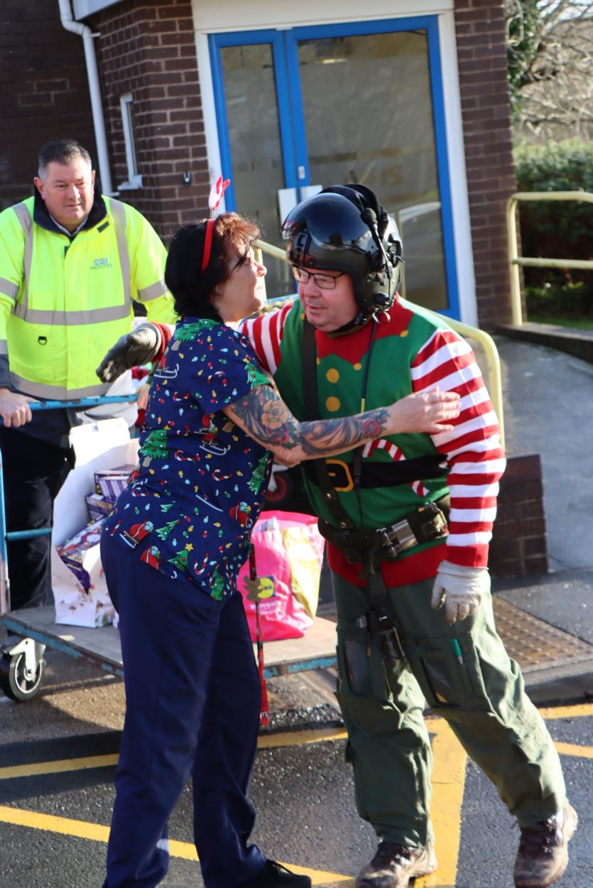 Royal Devon Hospitals Charity marketing and communications officer Andy Keeble said: “Hospital donations come in all shapes and sizes and we gratefully receive them in so many different ways but it’s always very special to see Father Christmas deliver them in a Sea King helicopter!