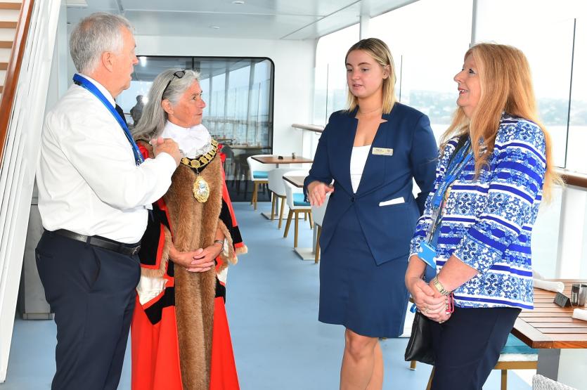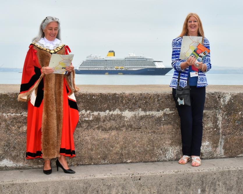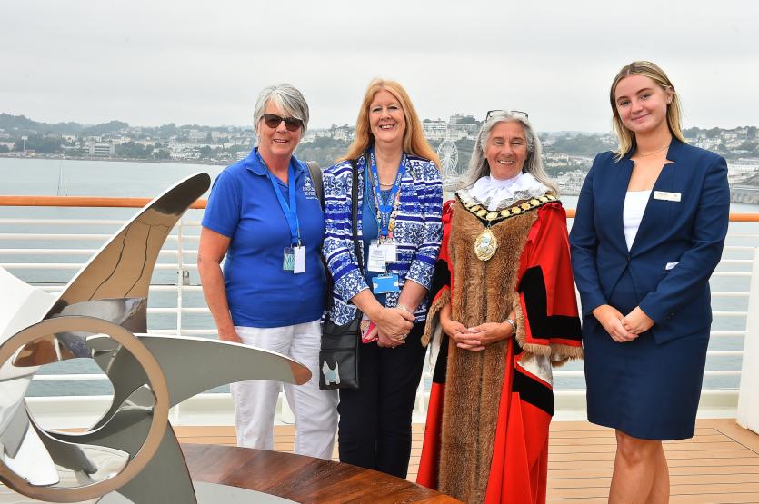 Passengers from the luxury cruise ship Spirit of Discovery were given a civic welcome when she dropped anchor off Torquay harbour on Wednesday 18 August.