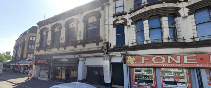 The block at 62-70 Victoria Street comprises four ground-floor retail units, a disused former nightclub on the second floor, and unoccupied residential flats on the upper levels. The current ground-floor traders include the Queen Victoria pub, mobile phone repair shop Fone Fix, Aroma Grill takeaway, and Yankees takeaway.