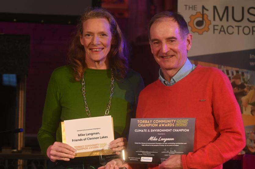 Winner: Mike Langman – Friends of Clennon Lakes. Mike leads the Friends of Clennon Lakes, who have been restoring Torbay's most important wetland to its former glory for a decade. Without the work of Mike, Duncan and all the volunteers who routinely meet up as working parties at The Lakes, one of our most beautiful and important wetlands would simply have disappeared.