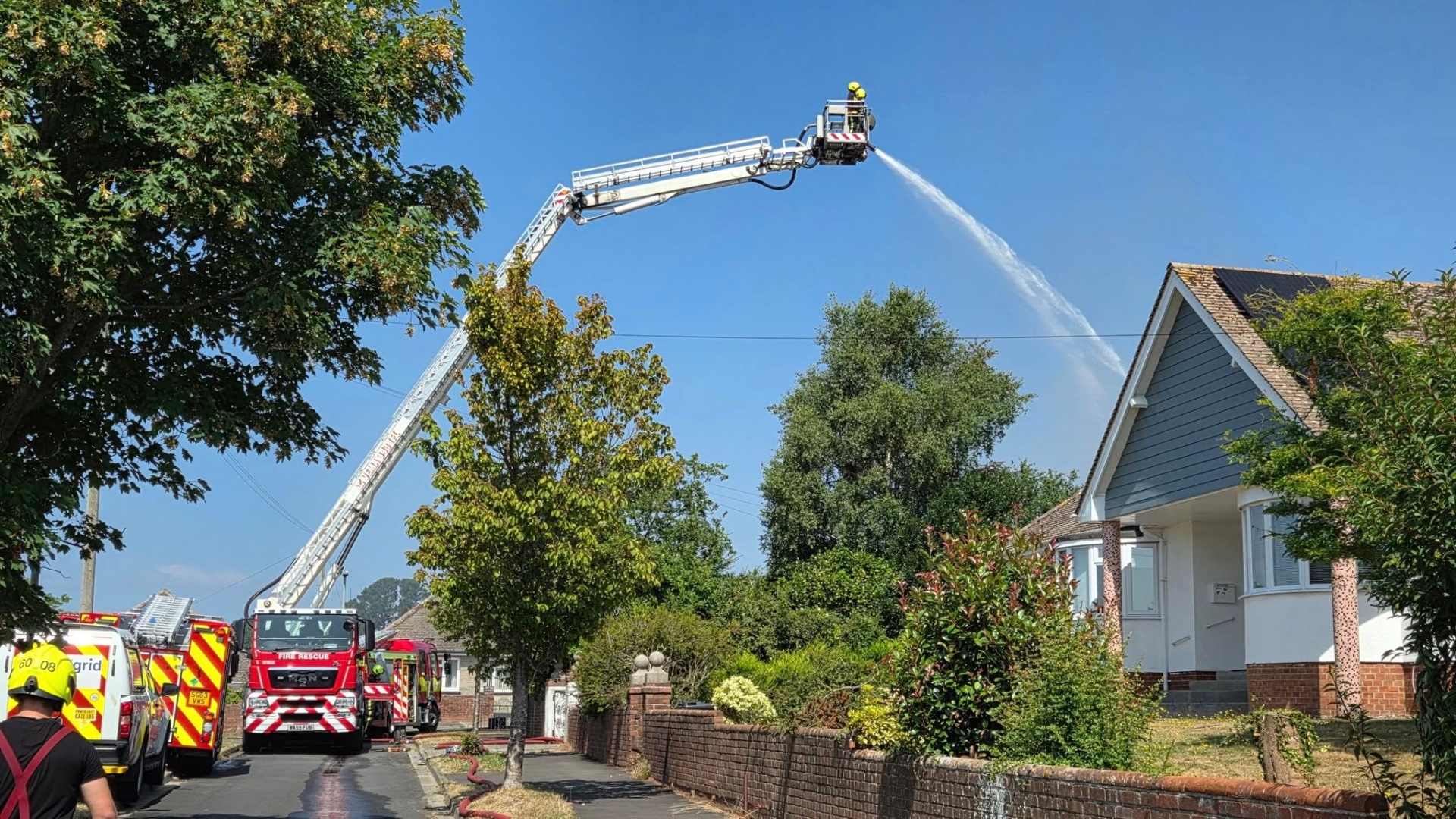 Once the ALP arrived on scene, they pitched their ladder above the bungalow and used the monitor to flood the building from above. This tactic allowed thousands of litres of water to be applied directly onto the worst areas of the fire, whilst keeping crews as safe as possible.