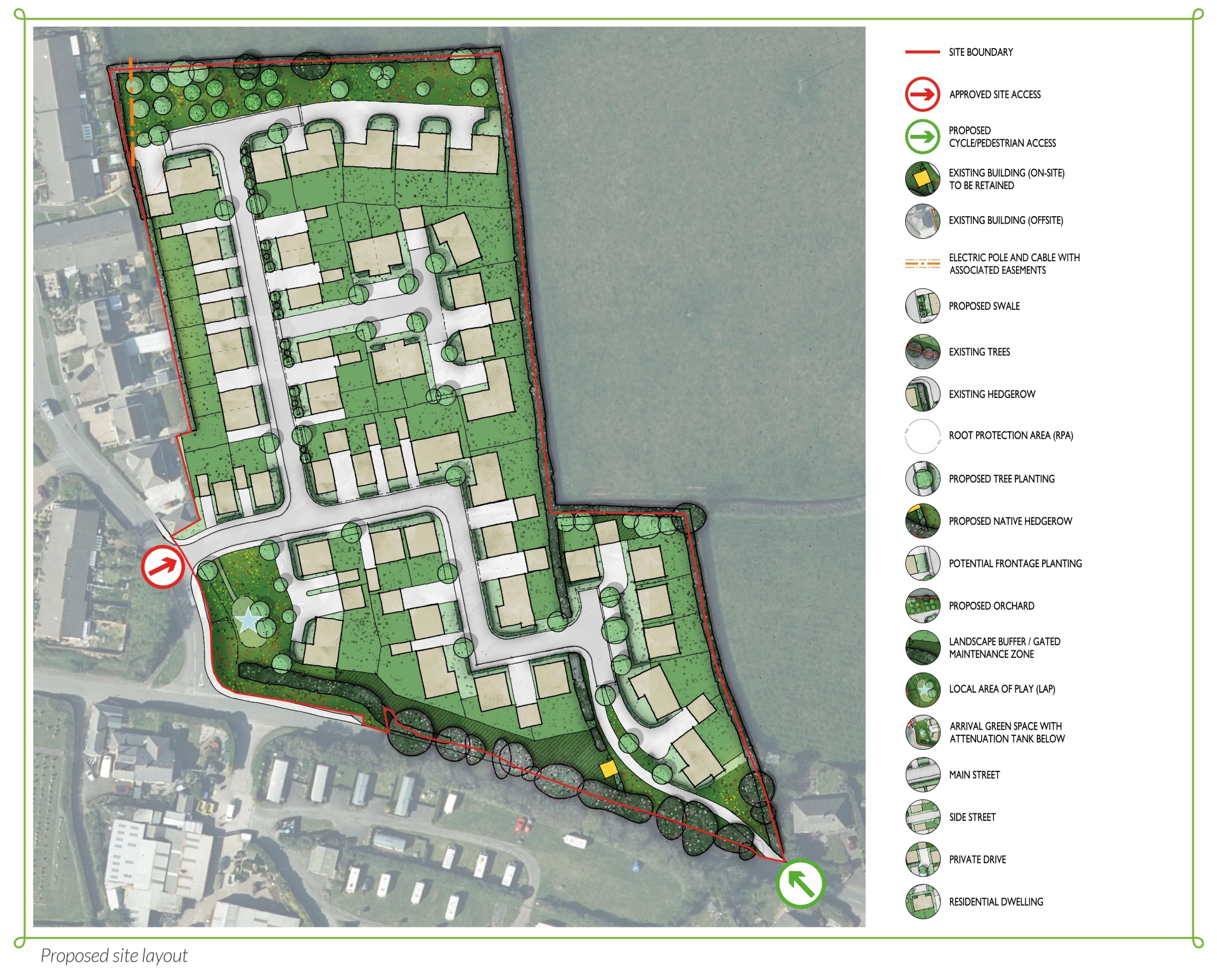 Vehicle access will be from Pengilly Way, while the development will also deliver a pedestrian and cycle connection between Pengilly Way and Harton Cross.