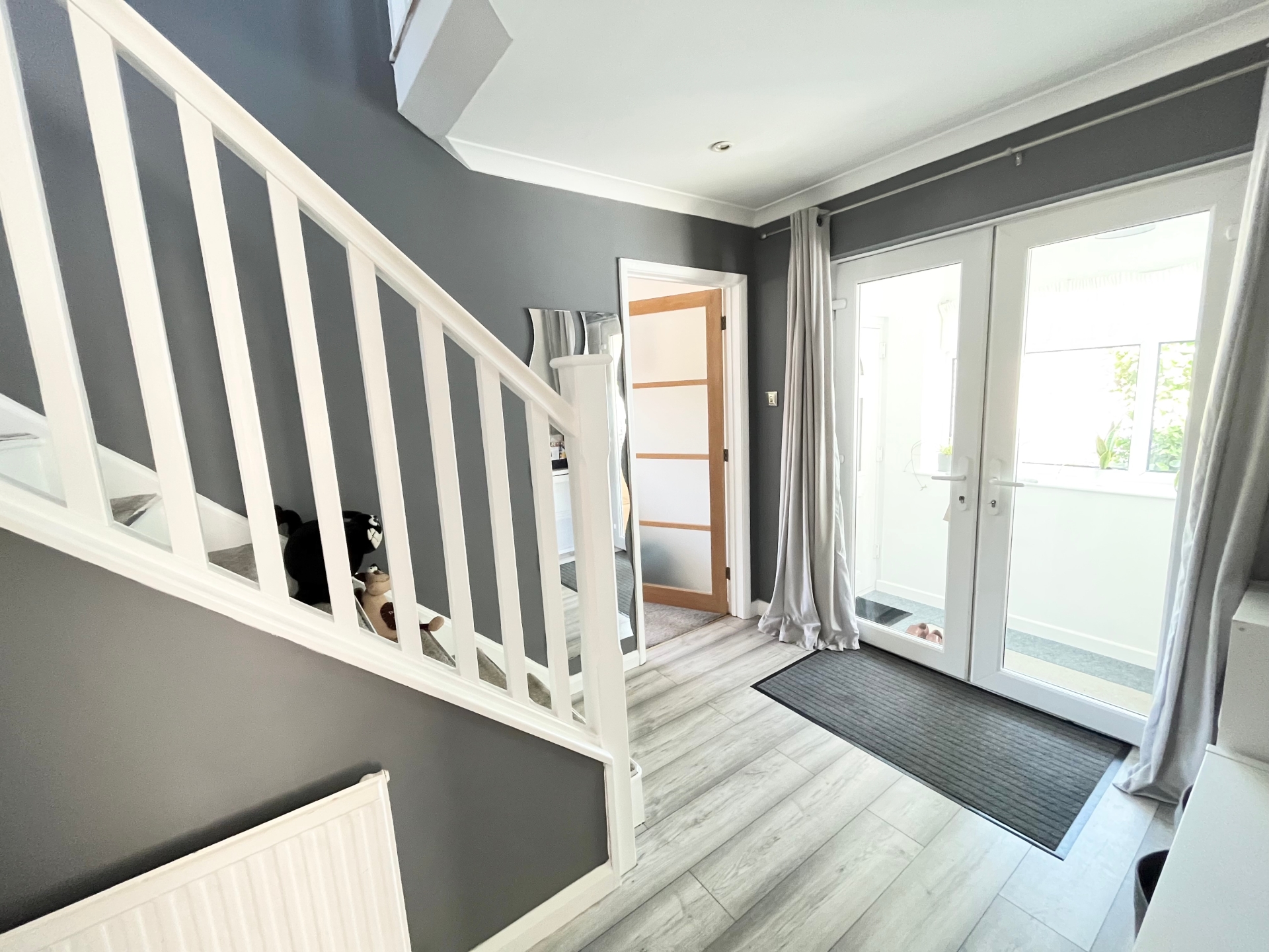 Enter the property through a large enclosed entrance porch with a composite front door and double-glazed windows.