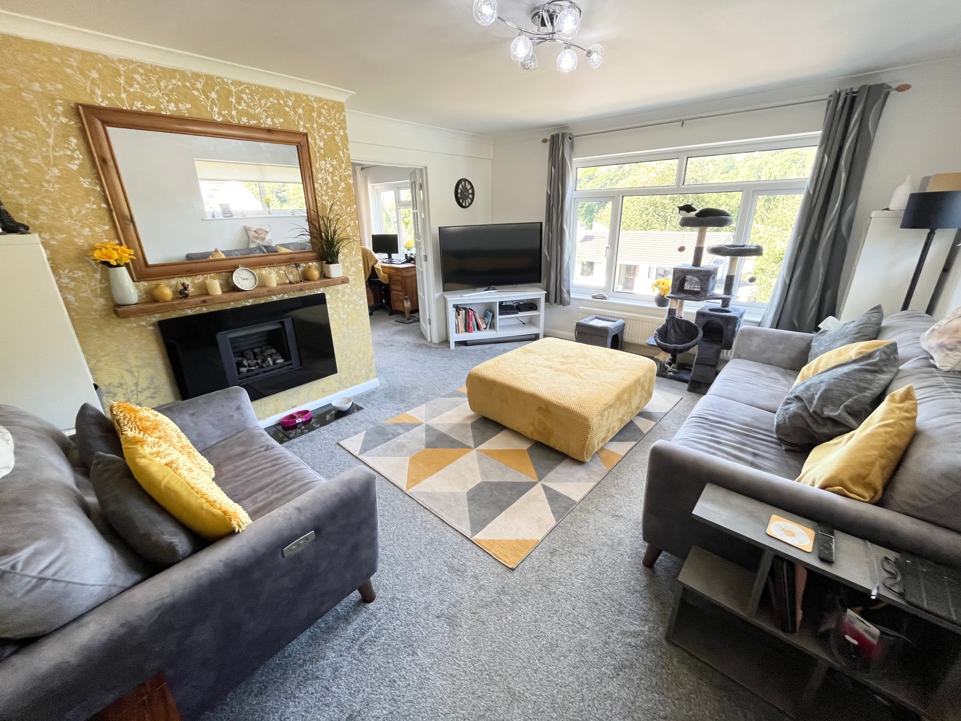 The sitting room is also well fitted, with a ceiling light point, smooth finish ceiling, double glazed window to front and side, elevated woodland views, TV aerial point, living flame gas fire and radiator.