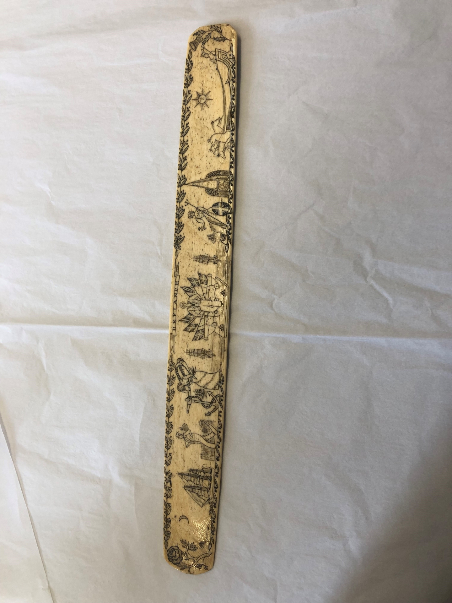 Holly said: “We had a recent donation of a piece of scrimshaw. It’s a worked piece of whalebone that would have been put into a corset to make you sit up straight and it’s just very beautiful. It shows the story of a sailor going off into the Napoleonic Wars.”