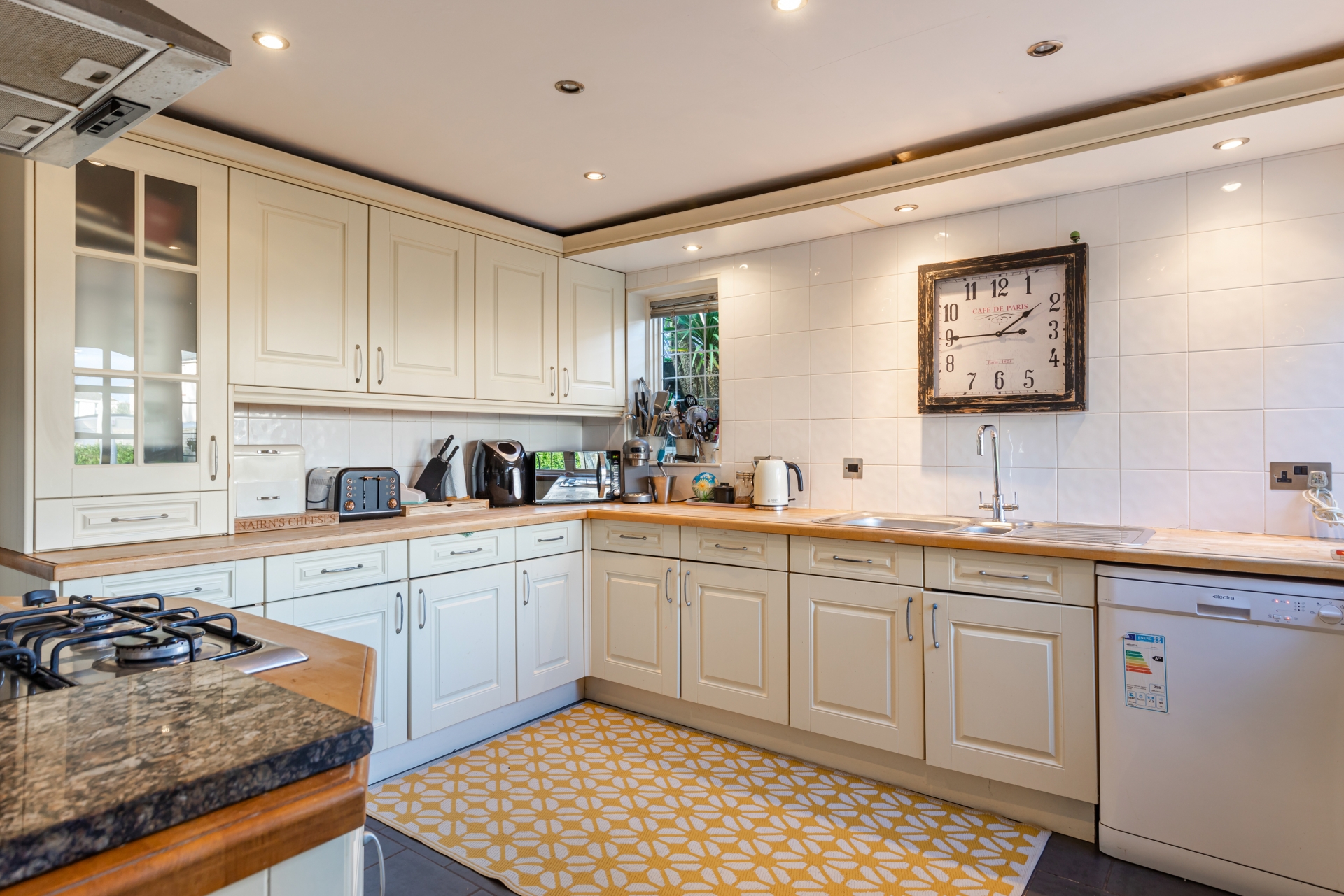 The kitchen has planning permission to extend and redesign to be a statement room, currently fitted with a range of units and wood effect work surfaces with an inset sink. There is an integrated electric oven and gas hob with stainless steel splashback and extractor hood above and provisions for a dishwasher. The kitchen also features a cupboard ideal as a larder with provisions for a washing machine and tumble dryer. A further cupboard could be used as a cloak space. Window to the side and stable door with window to the side overlooking and giving access to the front of the property.