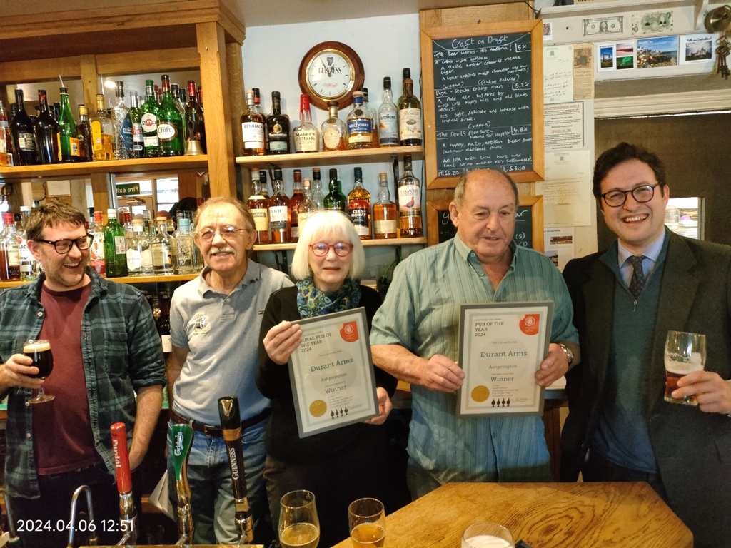 The Durant Arms in Ashprington has won South Devon CAMRA’s Pub of the Year 2024 and Rural Pub of the Year 2024.
