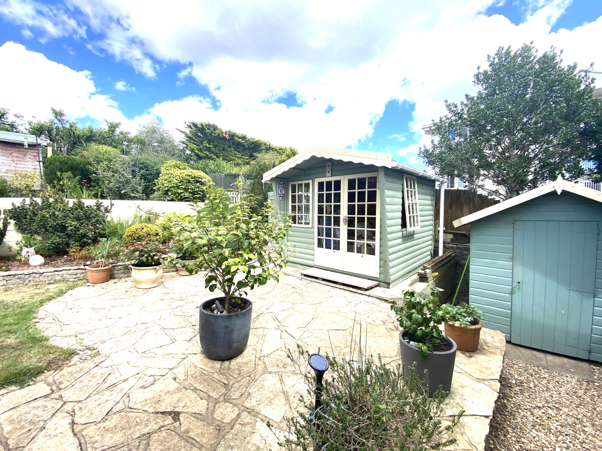 The rear garden is arranged over two tiers with the top tier arranged as a further planting/shrub garden with pathway leading through and a seating area to one corner to capture the evening sun.