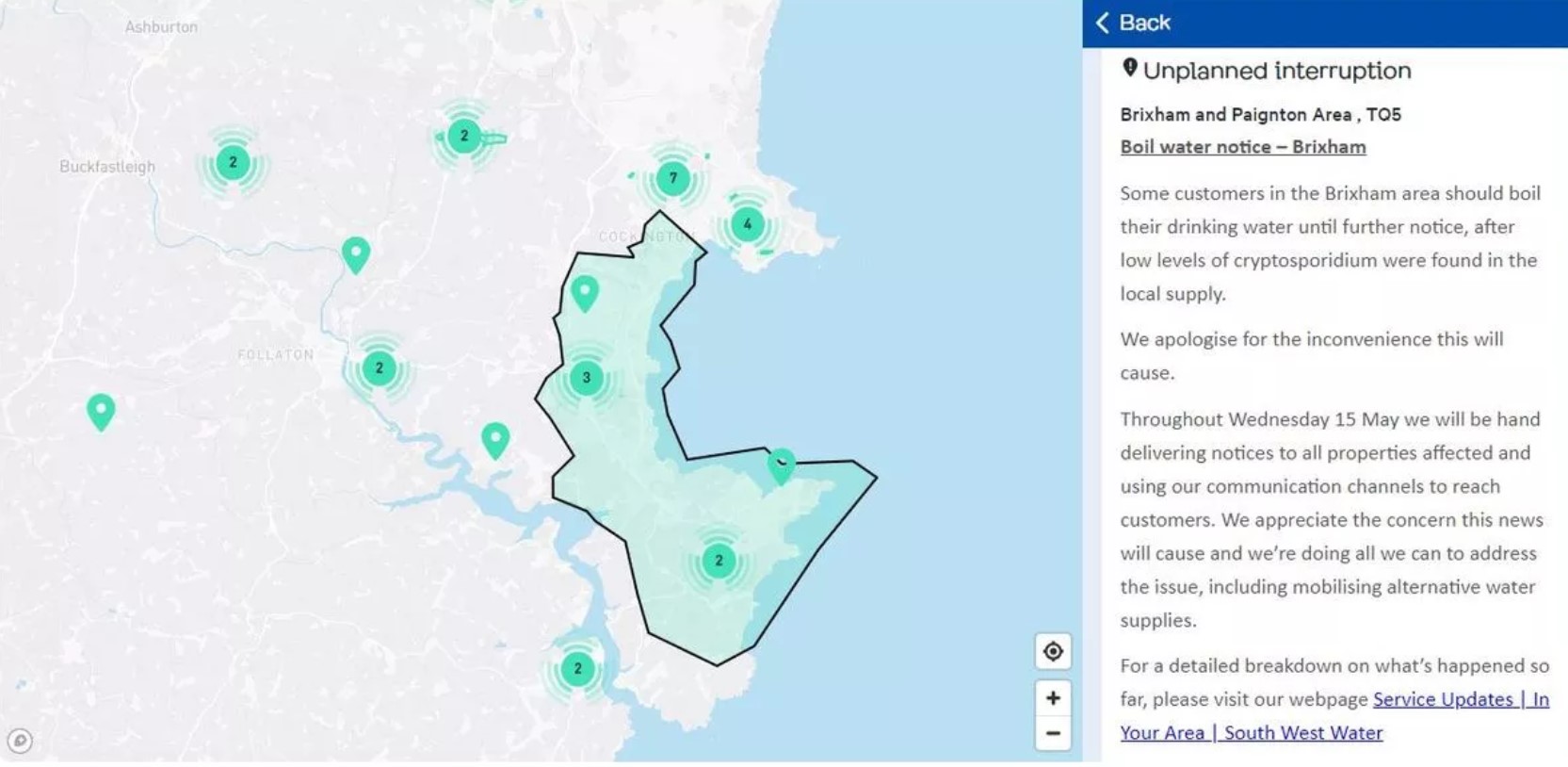 South West Water said: “Customers in Alston and the Hillhead area of Brixham are advised to boil their drinking water before consuming following new test results for cryptosporidium. We are issuing this notice following small traces of the organism identified overnight and this morning. We are working with the UK Health Security Agency and other public health partners to urgently investigate and eliminate the source.
