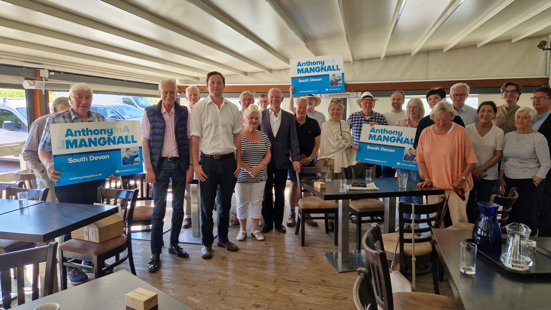 Baron Hague spoke to party supporters at the Churston Farm Shop Cafe, before heading out to help activists deliver leaflets.