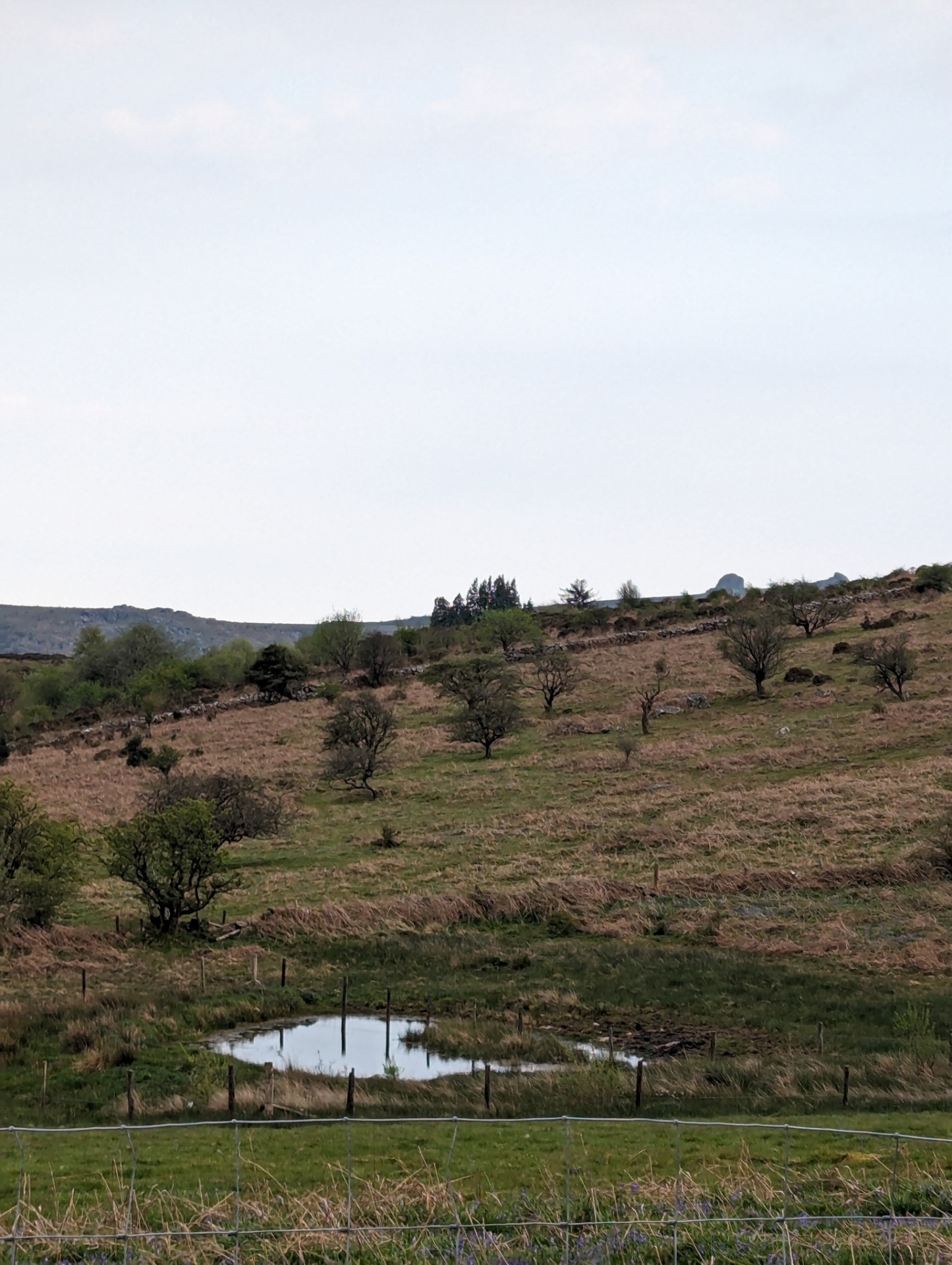 Crossing over the road below the Nose, I picked my way through the undergrowth to find a track that led me up to the fence marking the boundary to Cripdon Down. Hopping over, I found the next box near to the stile, then I headed towards Cripdon Down Sacred Pool, somewhere I’d only recently visited, as it featured in a set of boxes covering these pools, put out in the vicinity of each one. They are called Sacred Pools, as some have been known to contain votive offerings, left there by our Dartmoor ancestors, honouring whatever deity they believed resided below the waters. I had enjoyed my walk in this area, having not had reason to visit it before, so to visit it again so soon after added to the pleasure of the task in hand. I quickly found the various boxes dotted around the down, which afforded me excellent views of the surrounding landscape, including such landmarks as Manaton Church and Canna Farm, where it is said Kitty lived and died.