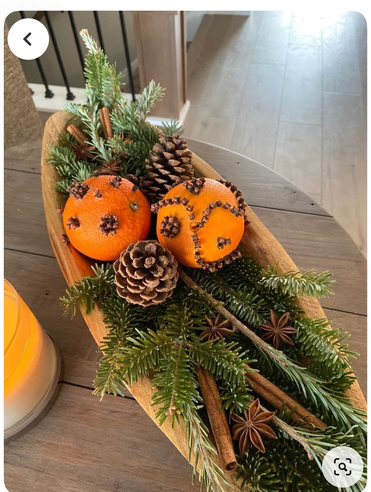 Oranges studded with cloves are not just decorative but also smell amazing! Slice oranges thinly, dry them, and string them into garlands or place them around candles for a pop of warm colour. You can also display whole oranges with sprigs of holly or bay leaves for a cheerful, rustic vibe that screams Christmas cosiness.