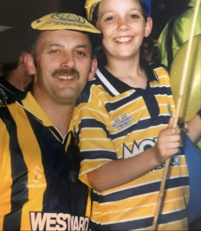Above: Dave Stacey and son Dean at Wembley in 1998