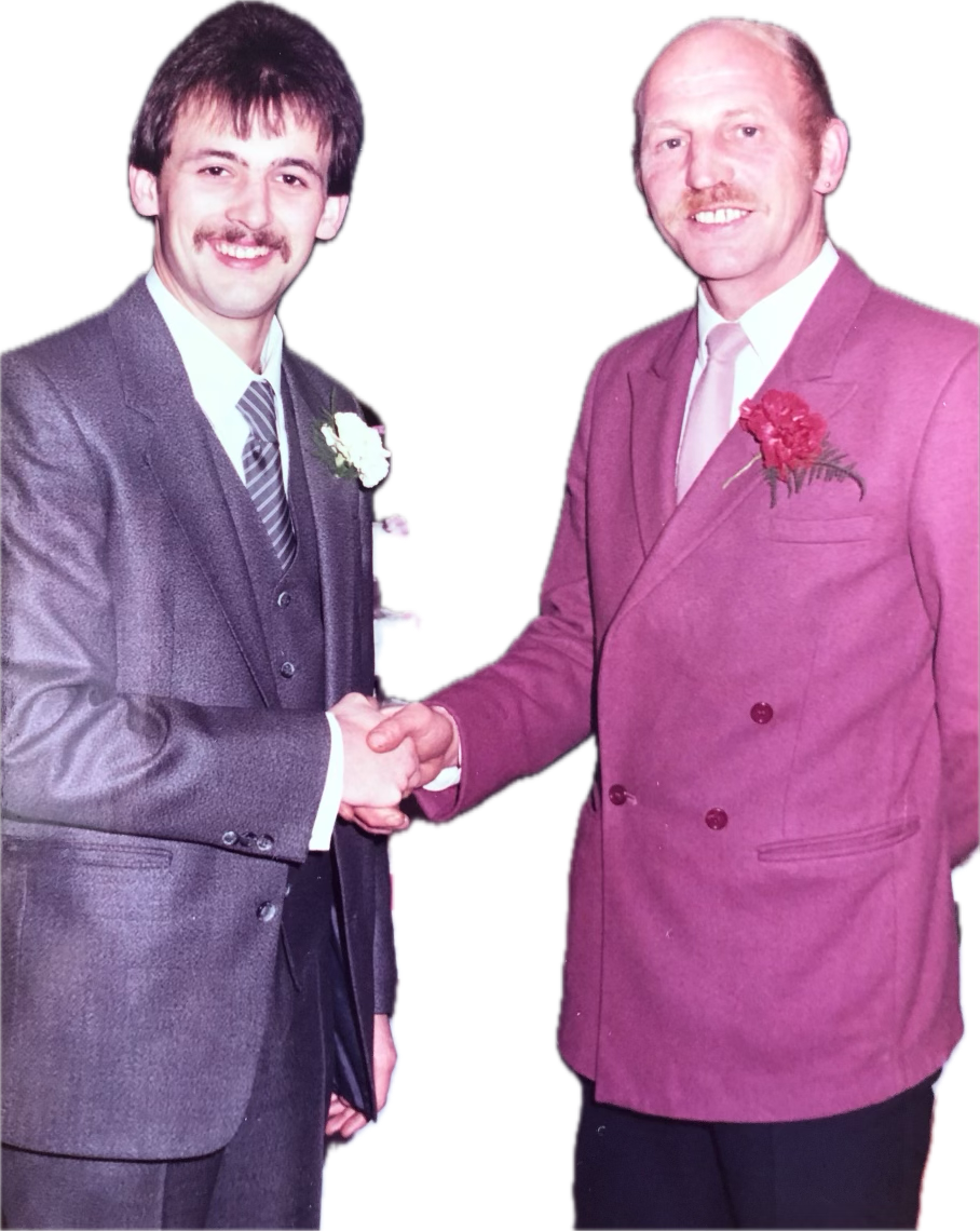 Above: The two Dave Staceys at younger Dave's wedding in 1984