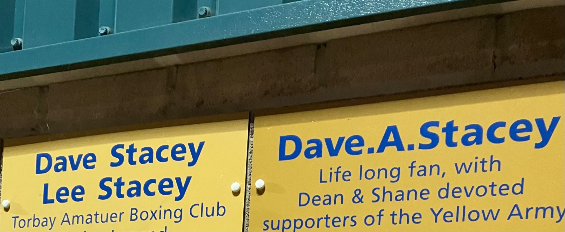 Above: The two Dave Staceys with their names on plaques at Plainmoor