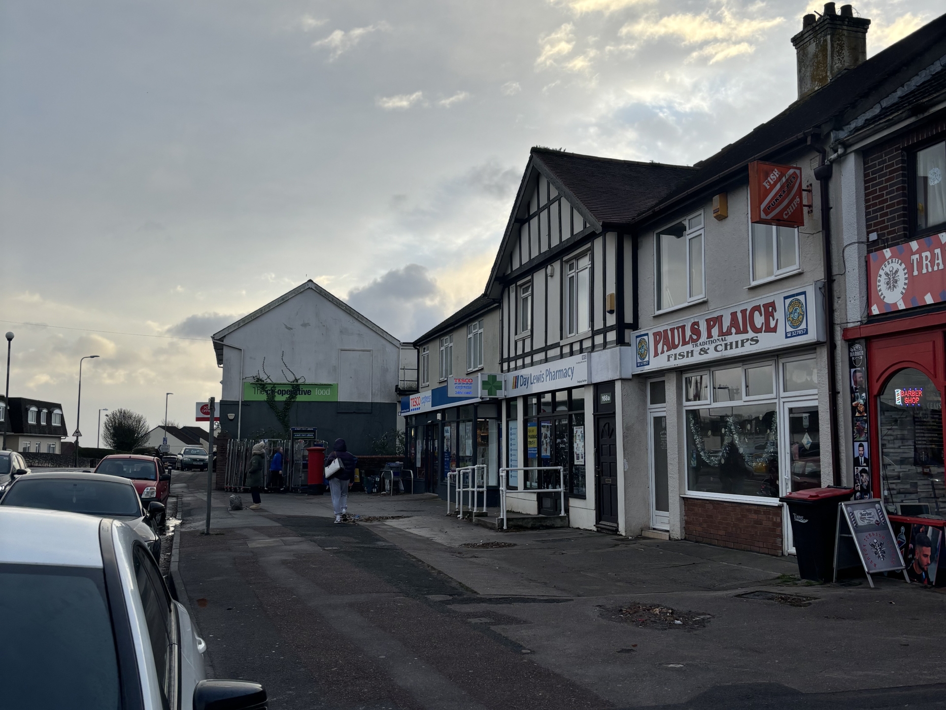 Though it is difficult to fully ascertain which shops are pictured in this photo, you can clearly make out a sign reading “newsagents” in the window of the building that is today a traditional Turkish barber’s. The building with the attractive pointed roof is now the premises of a Day Lewis pharmacy.