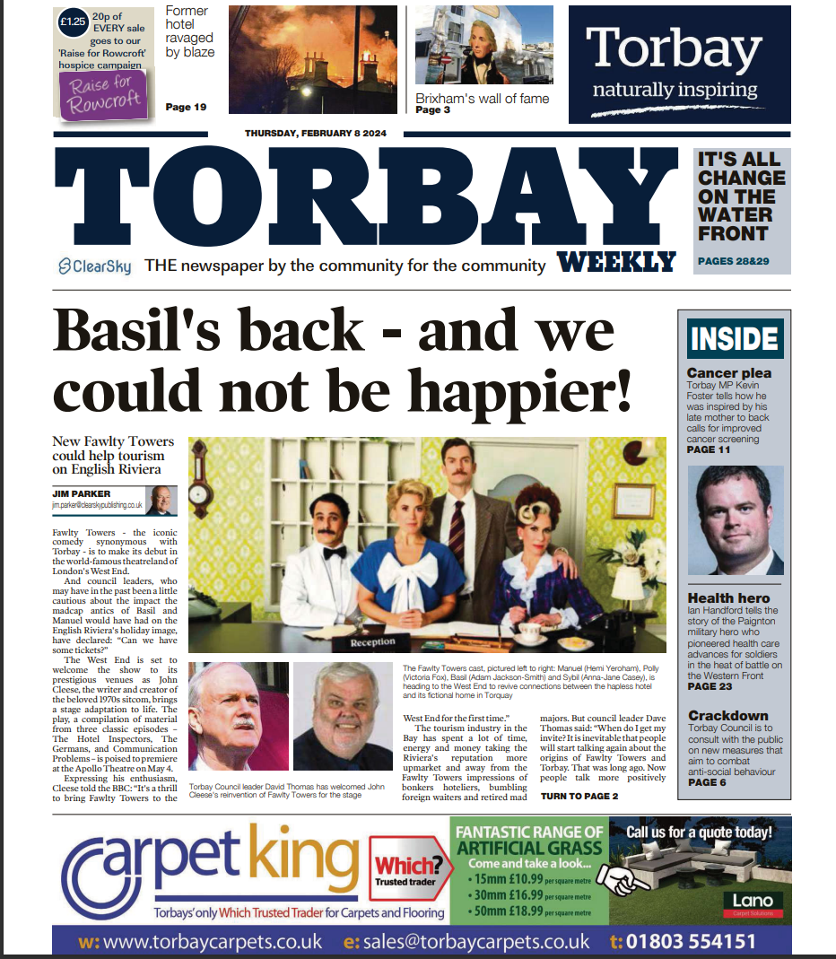 February: In February, it was announced that Fawlty Towers—the iconic comedy synonymous with Torbay—would debut in London’s West End. John Cleese, the writer and creator of the beloved 1970s sitcom, adapted material from three classic episodes for the stage. Council leader Dave Thomas remarked: “When do I get my invite? You cannot airbrush out history, but this is a bit of light relief. I would love to go and see it.”