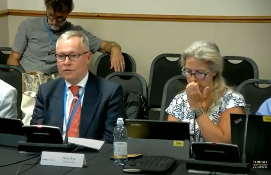 Above: Cllr Nick Bye addresses a meeting of Torbay Council Cabinet (Torbay Council Live Stream)