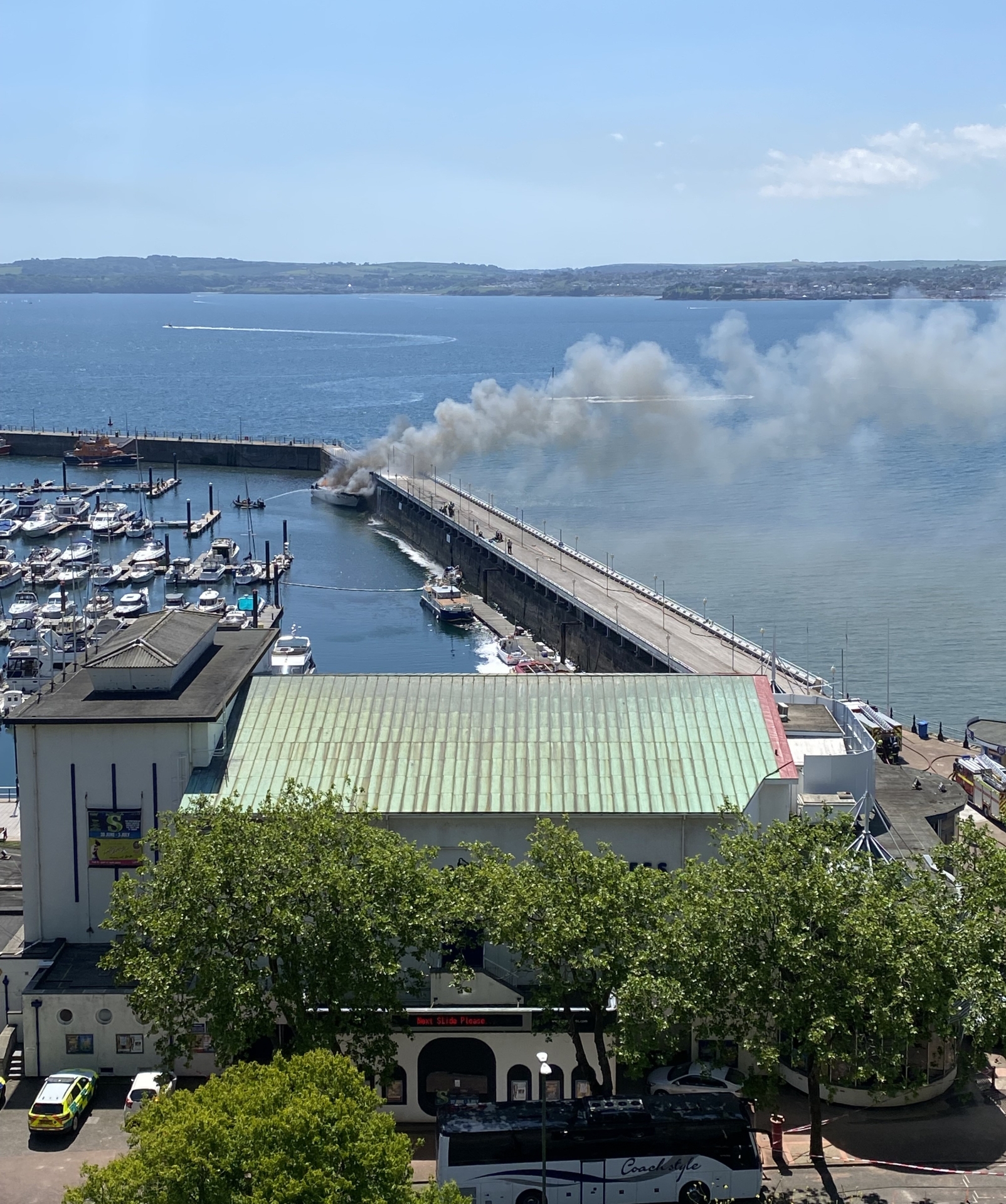 Above: Princess Pier in 2022 when a £6m superyacht went up in flames. Image: Ella Woszczyk