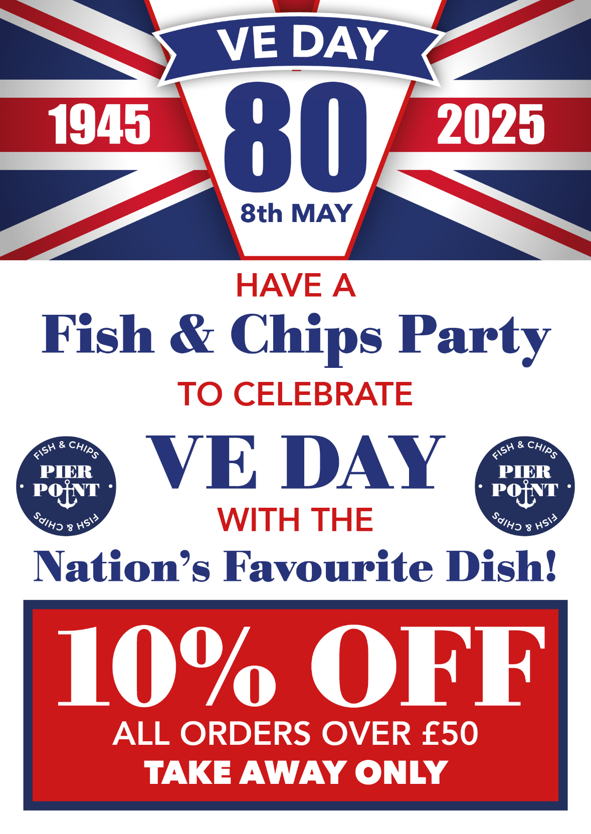 Pier Point is taking part in the National Federation of Fish Friers VE Day Fish and Chip Party, offering 10 per cent off takeaway orders of £50 or more in a single transaction on May 8.