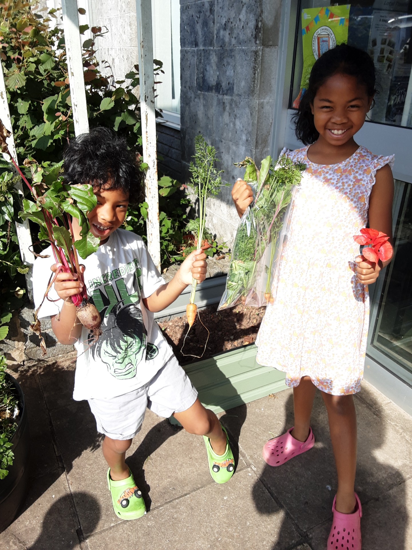 It hosts a children's gardening club from spring to summer, where young participants plant tomatoes, kale, beans, flowers and 'magic beans'. This year, the club is sponsored by Pure Garden Centre, which donated seeds. Herbs like parsley, mint, and rosemary grow outside the library, and all produce is shared freely with locals.