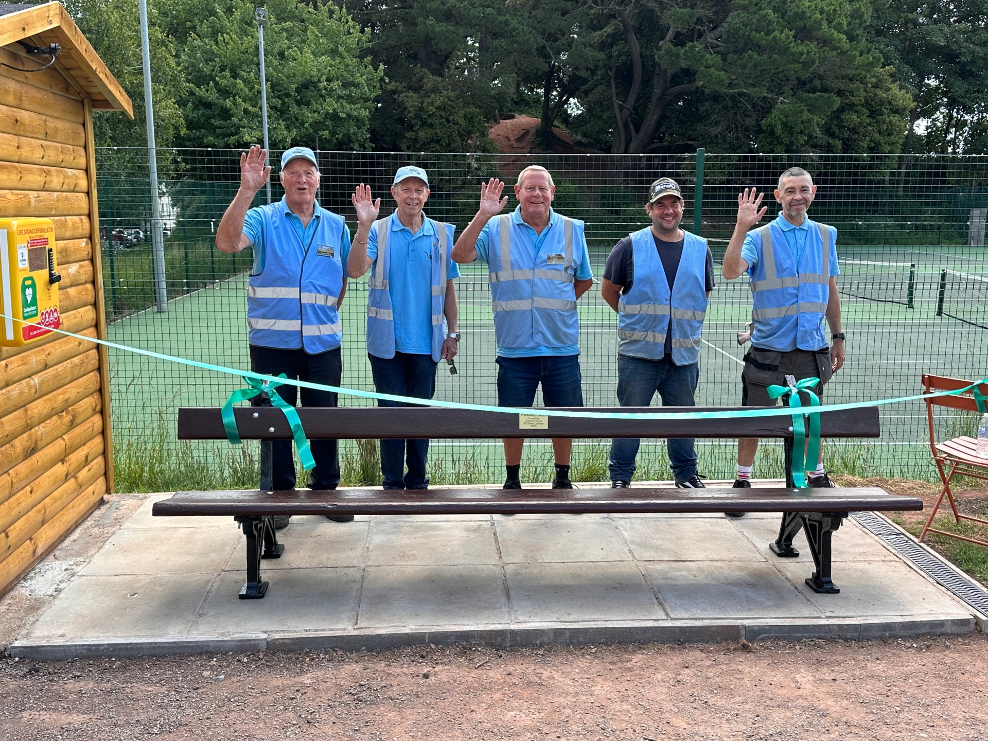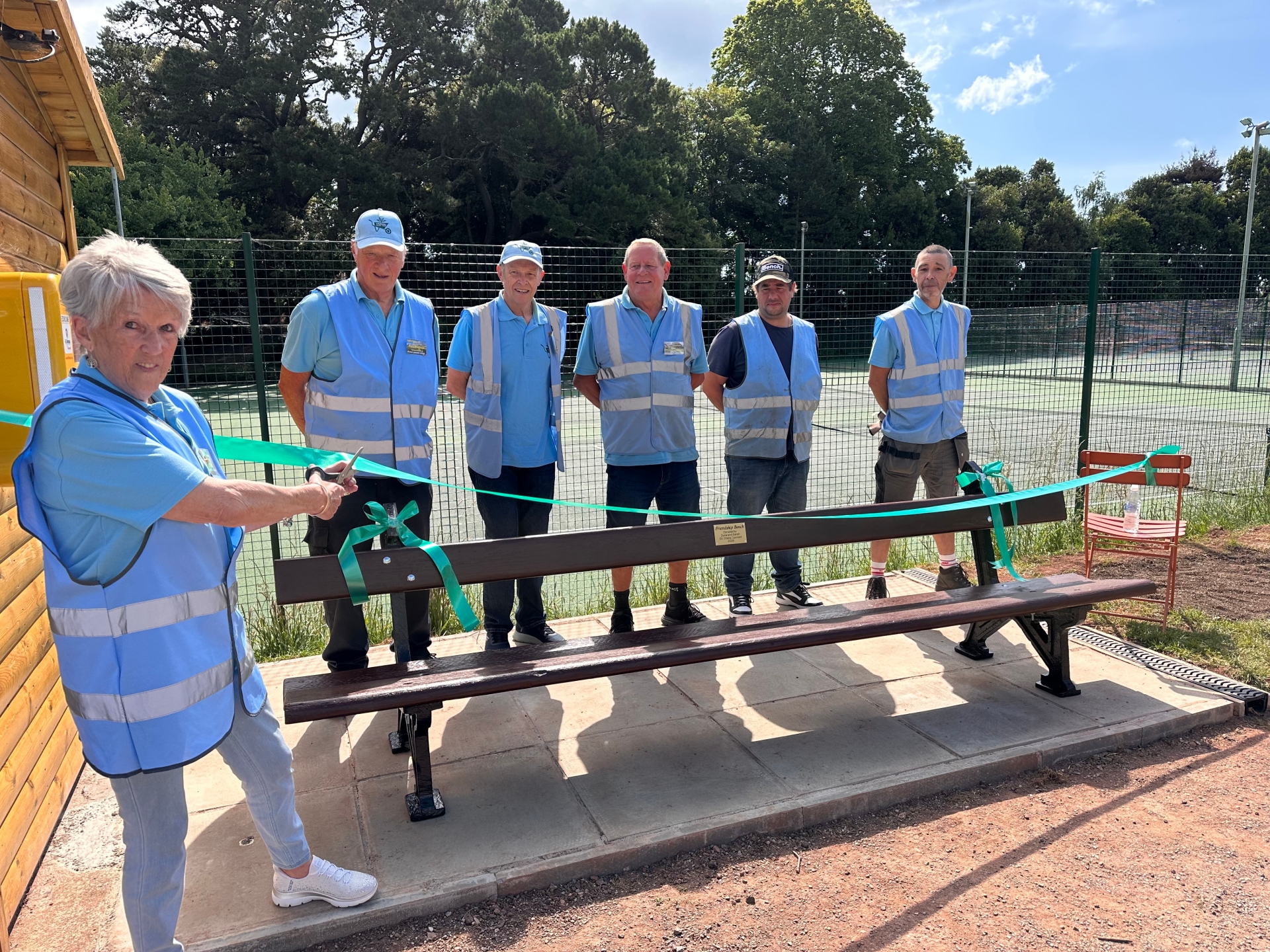 The event on June 2 took place at Oldway Mansion in Paignton, the Grade II listed heritage site now undergoing a multi-million-pound restoration. The new bench is beside the tea hut, which was refurbished last year by volunteers, fitted with a defibrillator and placed close to the tennis courts.