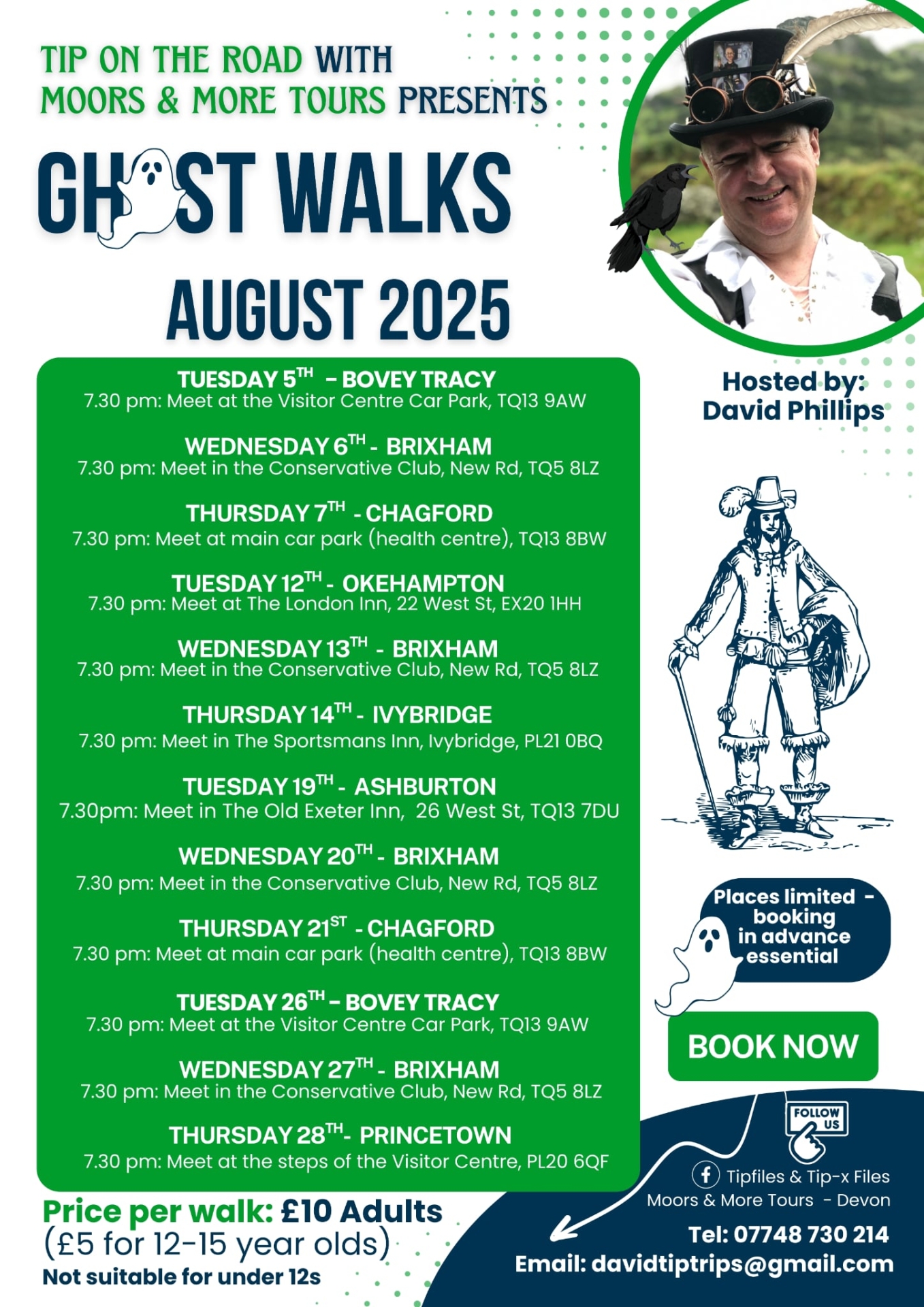 With six different Dartmoor Ghost Walks under my belt, I added the Brixham Ghost Walk to my repertoire back in January, and that has proved very popular. Stepping into the shoes of Dastardly Dave, I took up the reins, choosing to run them once a month for the foreseeable future. With the summer holidays now upon us, I’ve taken the plunge to run one every Wednesday, throughout August, until mid-September.