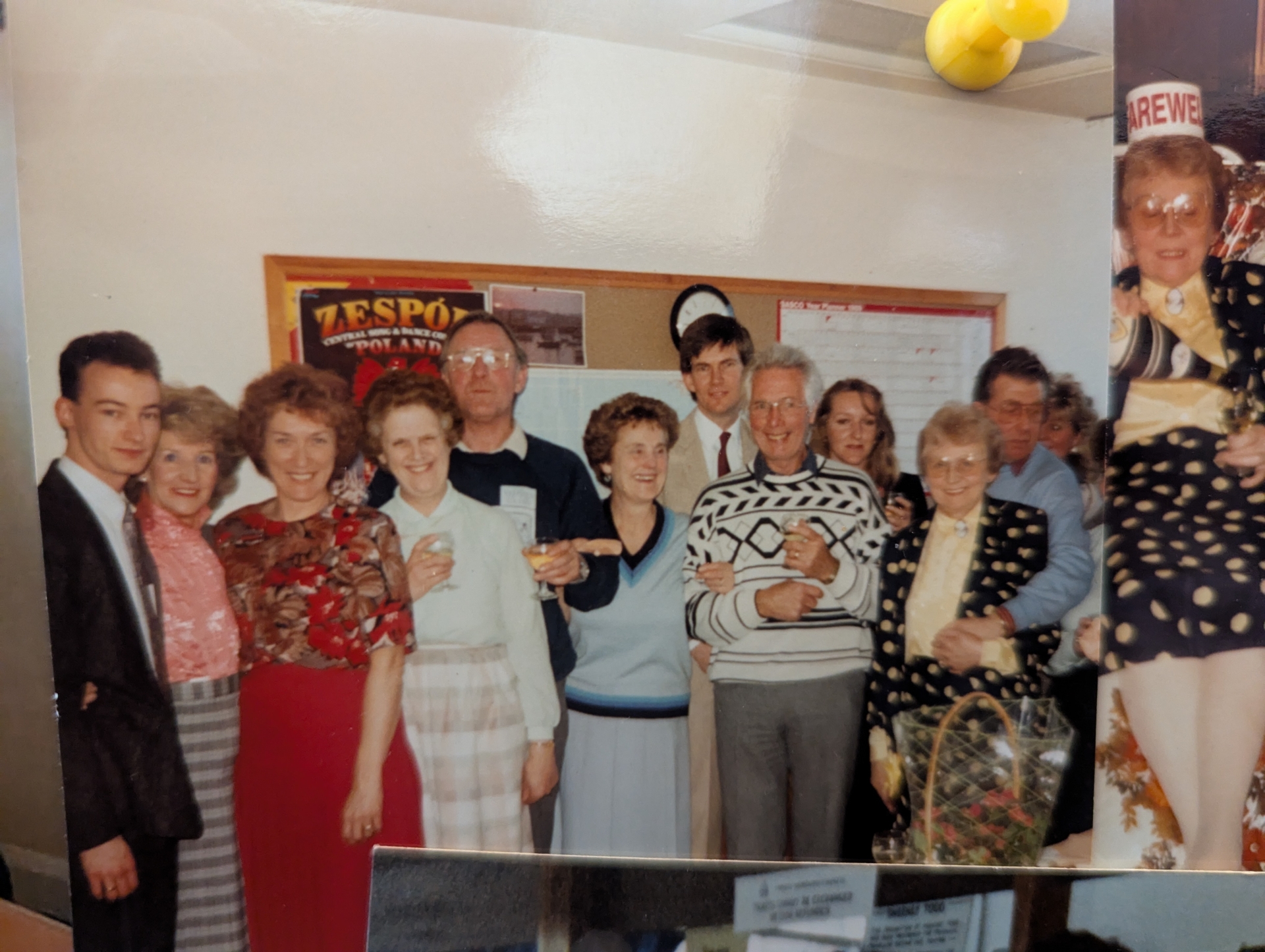 After the funeral service, we were all treated to afternoon tea, delicious sandwiches and cake, at the Redcliffe Hotel, in Paignton, where we had chance to catch up, and reminisce with our fellow mourners, some of whom had also been given jobs by Pat in the box offices over the years. These remembrances, were assisted by a helpful display of old photographs, depicting many happy occasions from Pat’s home and work life, including one in particular that was taken on the day of her retirement, which has brought back many interesting memories for me...