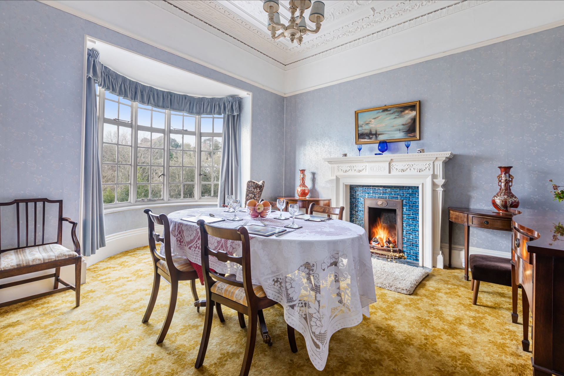 Bedroom one with bay window overlooking the private garden enjoying a view over the neighbouring Hesketh Crescent towards the sea and the surrounding wooded area. Marble fireplace with tiled hearth. En-suite bathroom.