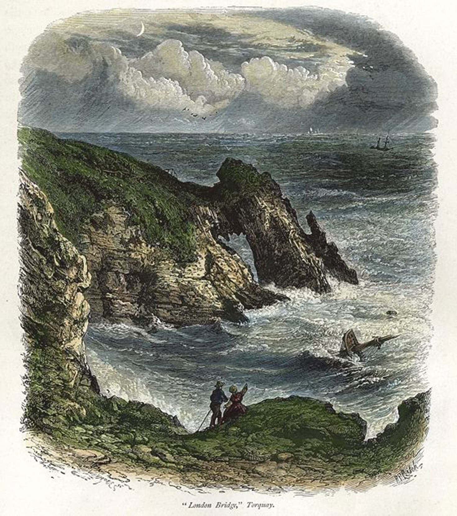 But London Bridge just doesn’t look like the Thames River crossing that the Victorians and Edwardians were familiar with. Recognising this incongruity, in 1832 Octavian Blewitt in his ‘The Panorama of Torquay’ called London Bridge an “absurd appellation”. Torquay historian Arthur Charles Ellis suggests that “The explanation for the name often given is that it comes from the same granite as London Bridge”. Arthur fails to point out, however, that our arch is limestone and not granite.