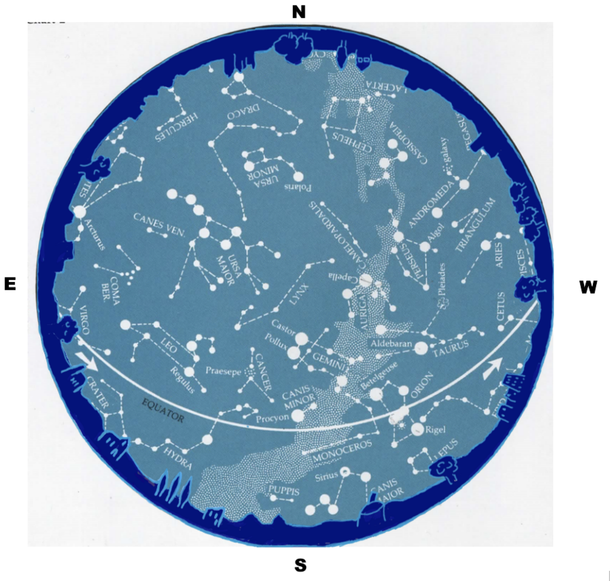 The sky will look like the chart on February 7 at 9pm and again on February 21 at 8pm. And four minutes earlier on each successive night e.g. 8.56 on February 8.