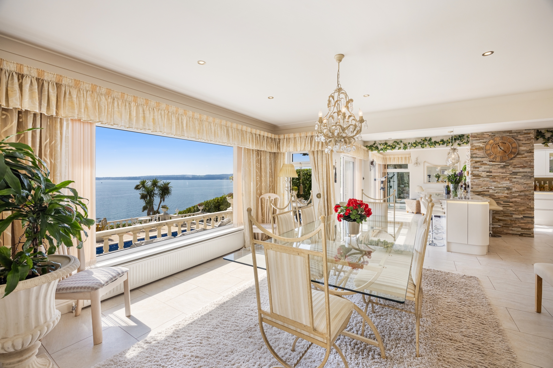 The property presents a true English Riviera lifestyle, with the stunning vista being the backdrop to the southerly terracing and heated outdoor swimming pool. The interior is beautifully presented, with the principal living space taking full advantage of the sea views, arranged in a traditional four-bedroom design of circa 2500 sq ft.