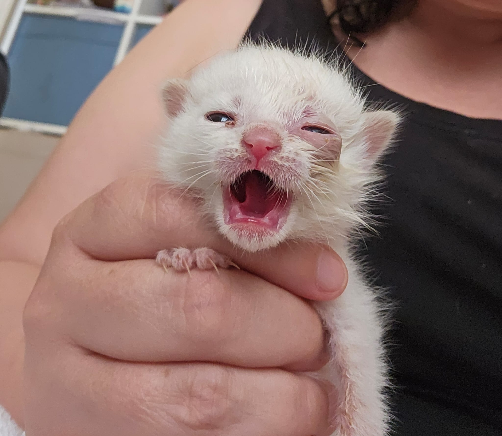 Tragically, two of the kittens didn’t make it, but the third, now named Audley, has been recovering well despite an infection in his eye.