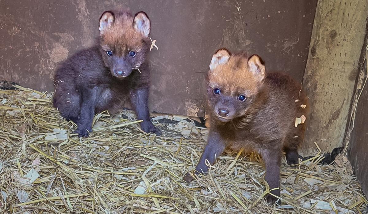 Paignton Zoo is celebrating the birth of two rare maned wolf pups, born to parents Tolock and Lua early last month.