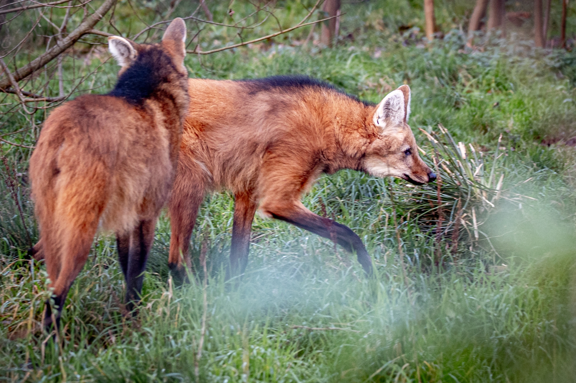Maned wolves are South America’s largest wild dog, standing almost a metre tall and weighing up to 25kg. Despite their name, they are neither wolves nor foxes, but a distinct species. They are largely solitary animals and have a varied diet including small mammals, insects, fruit and vegetation.